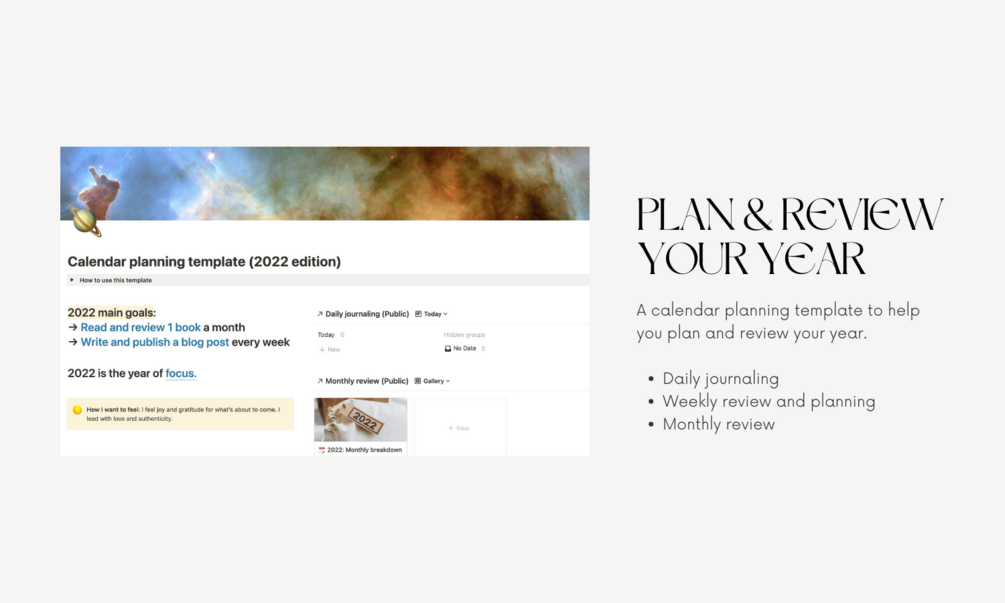 You'll get a Notion template to do your review and planning for the year